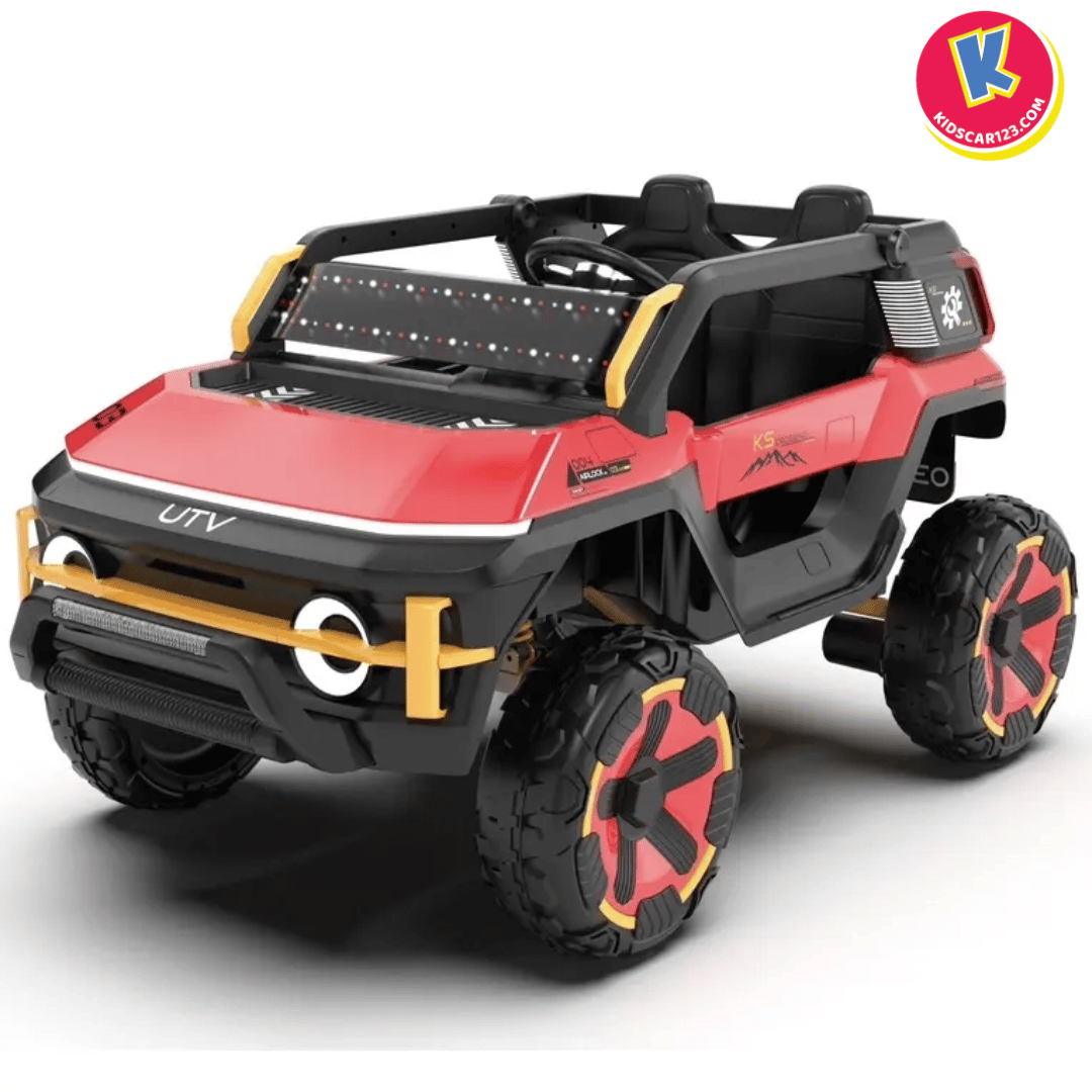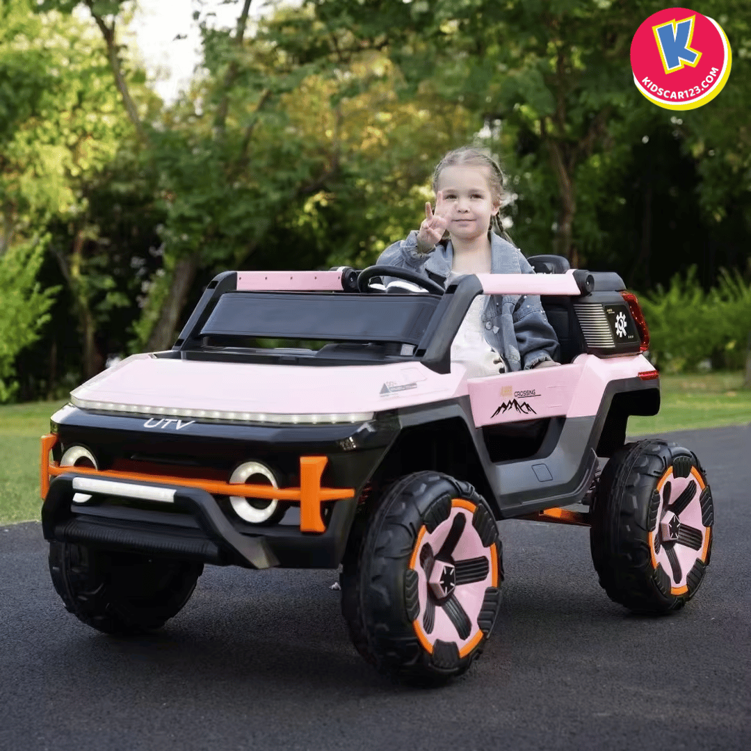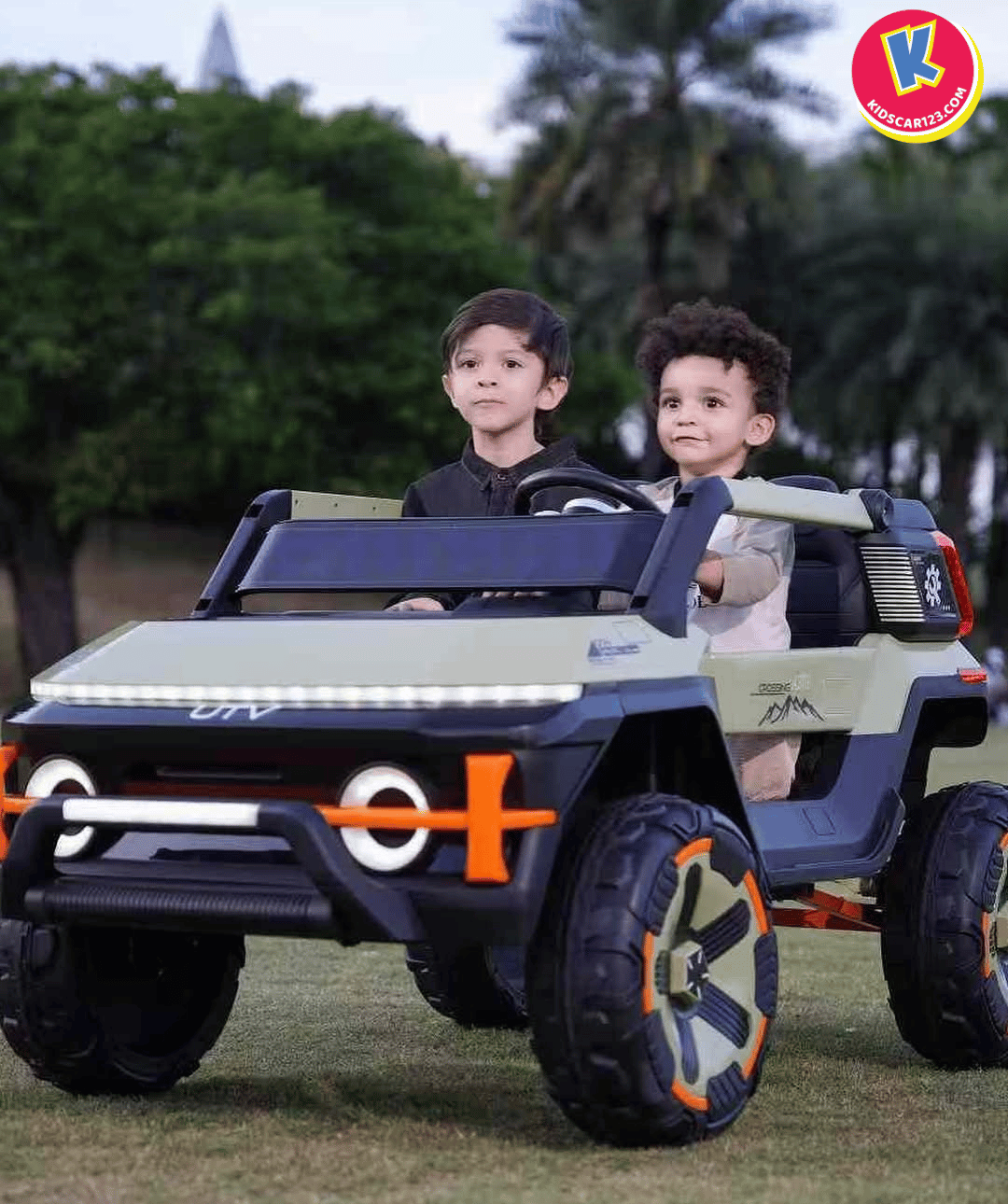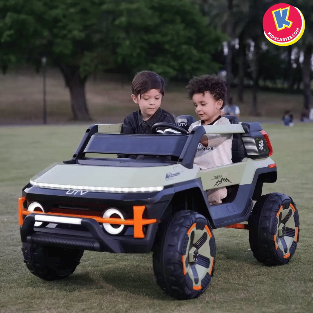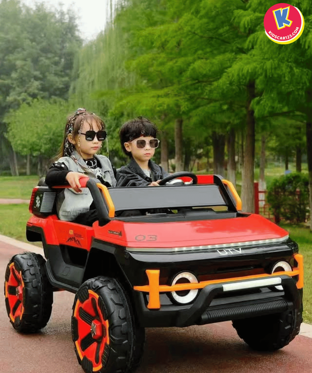 • Dáng xe địa hình mạnh mẽ: Khung sườn UTV góc cạnh, lốp xe “bản lớn” chống trơn trượt – sẵn sàng “đại náo” mọi địa hình từ sân vườn đến công viên!