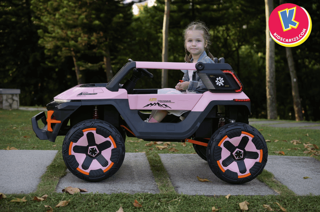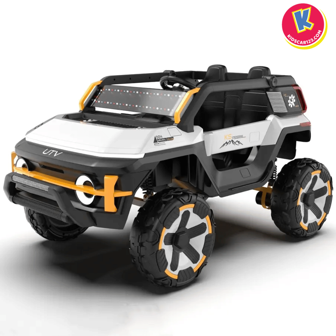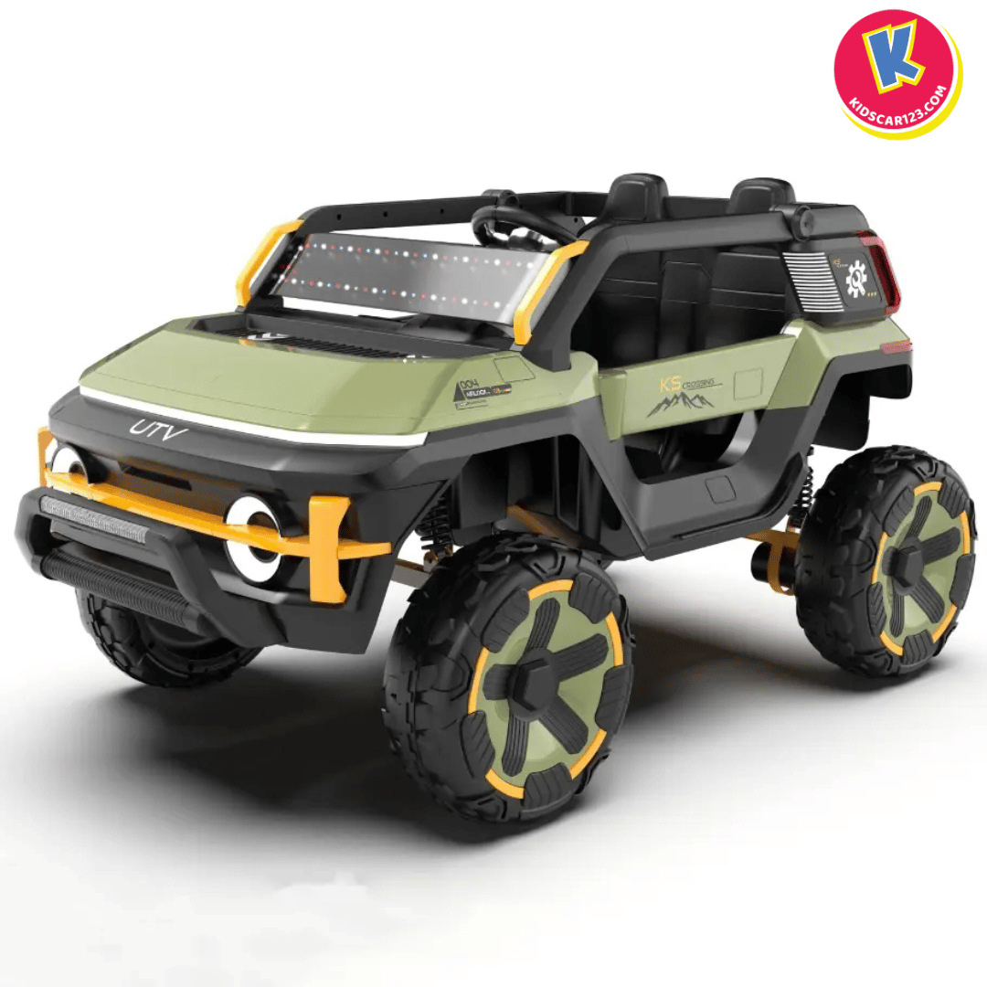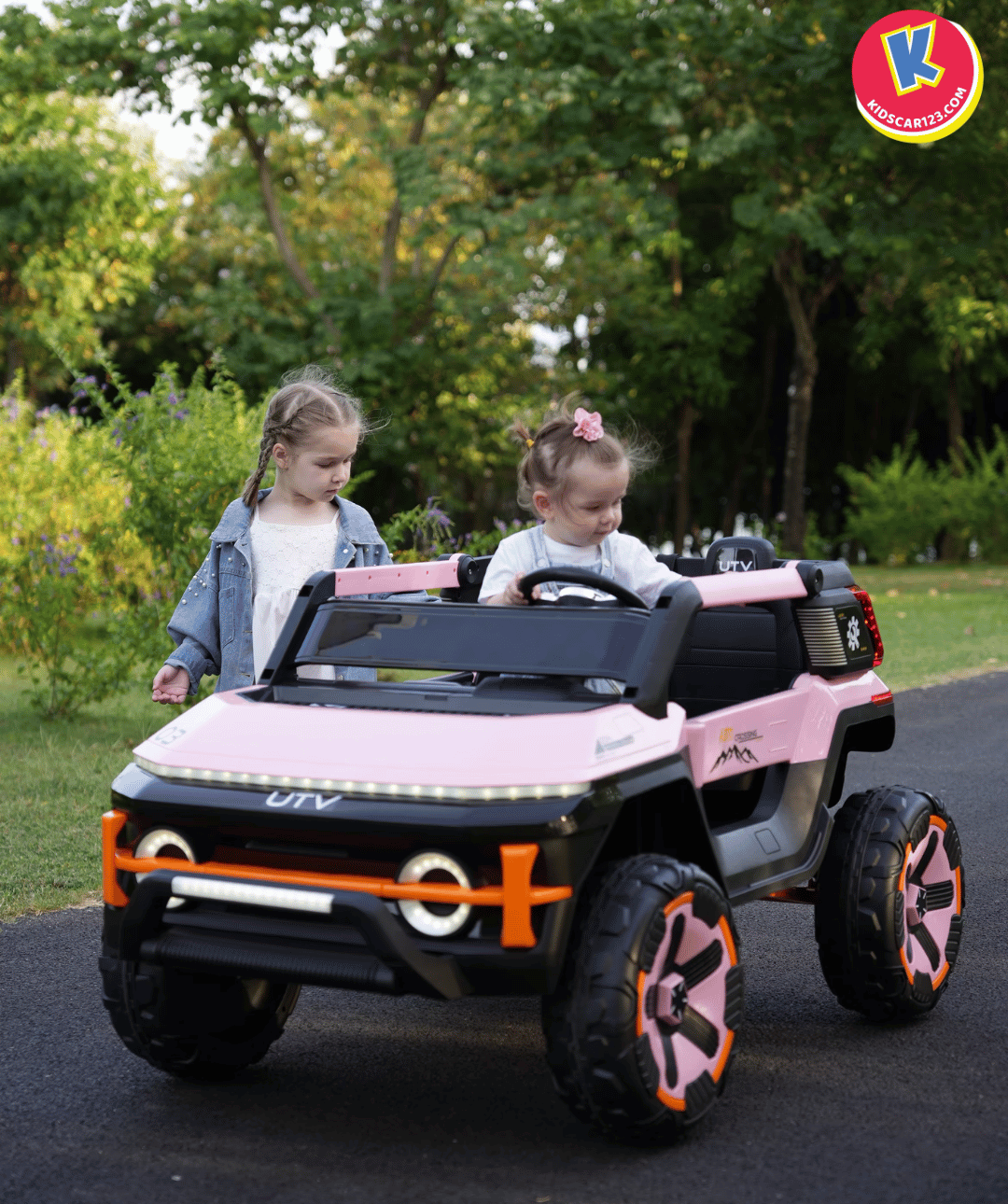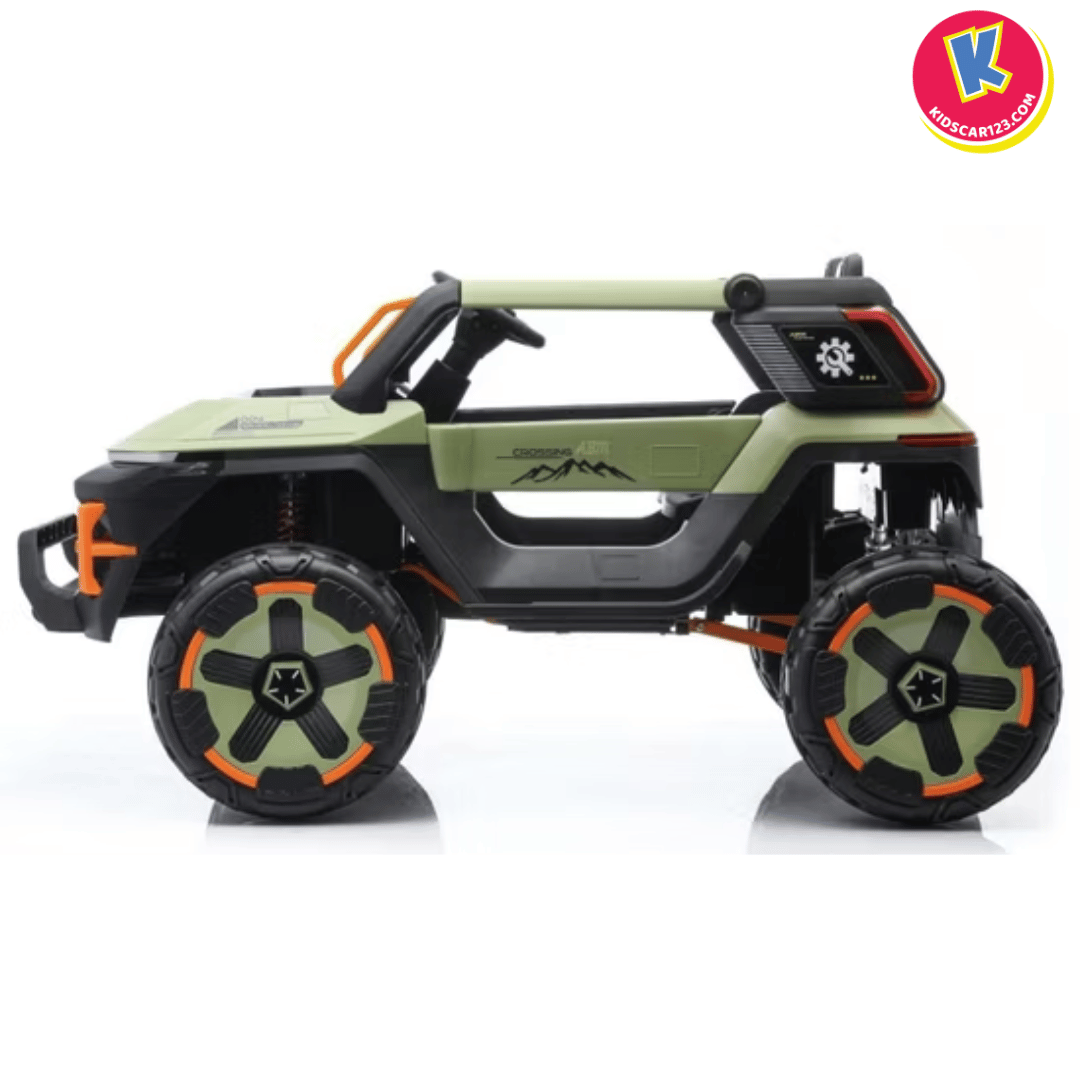 • Dáng xe địa hình mạnh mẽ: Khung sườn UTV góc cạnh, lốp xe “bản lớn” chống trơn trượt – sẵn sàng “đại náo” mọi địa hình từ sân vườn đến công viên!